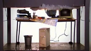 Vodafone gave us a pretty uninspiring brief asking us to talk about "Normalising Mobile Working". We scratched our heads for a bit and then it hit us: Since the Vodafone Blackberry allows you to work on the move, you might as well get rid of your desk. And the Desk Crusher was born.